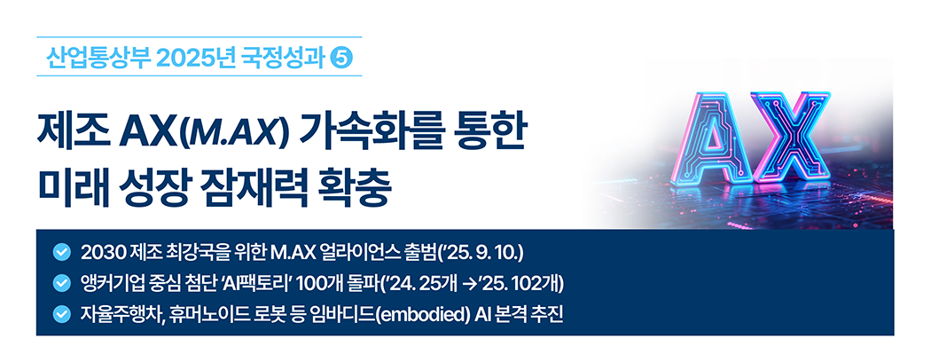 제조 AX(M.AX) 가속화를 통한 미래 성장 잠재력 확충- 2030 제조 최강국을 위한 M.AX 얼라이언스 출범(’25.9.10)